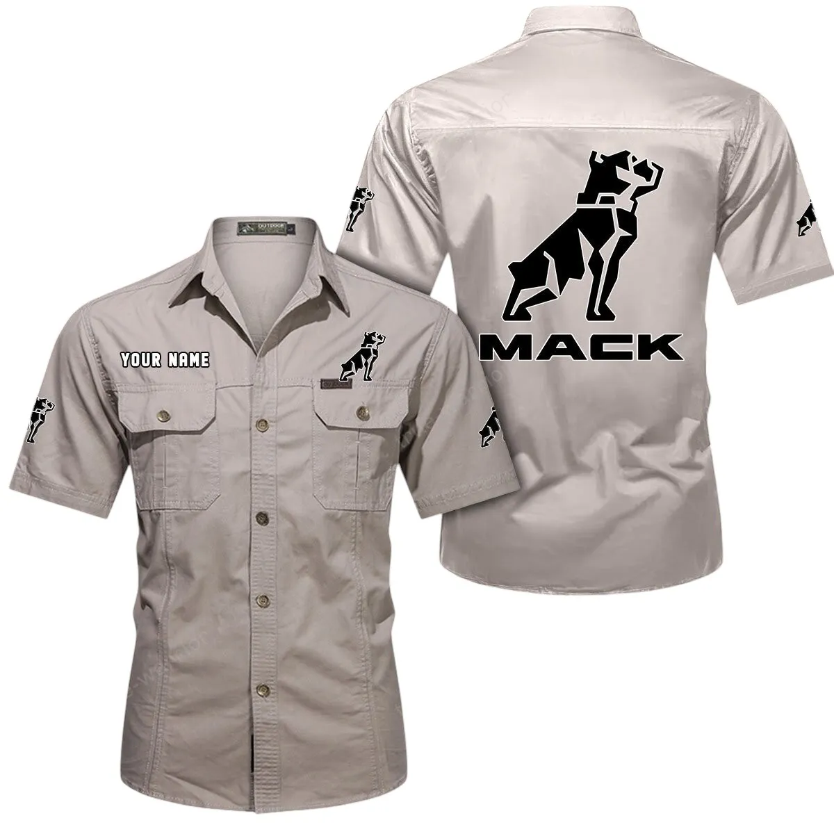 Mack Short Sleeved Shirt, All Over Print Button Shirt CAR444052625877 - Khaki