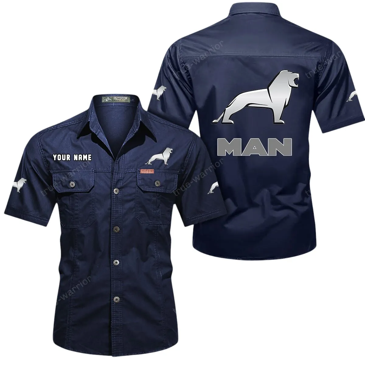 MAN Truck Short Sleeved Shirt, All Over Print Button Shirt CAR444052625923 – Dark Blue