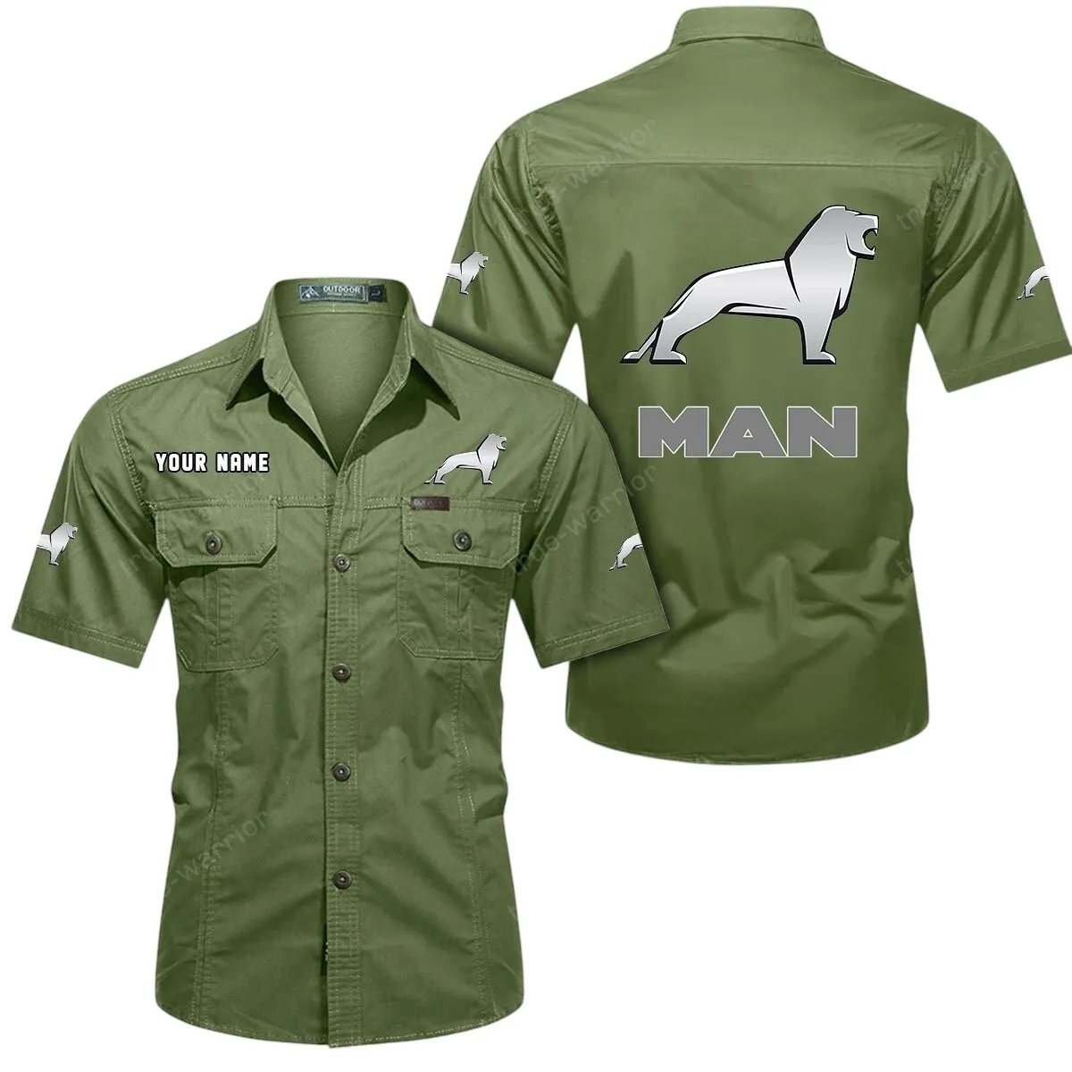 MAN Truck Short Sleeved Shirt, All Over Print Button Shirt CAR444052625923 - Army Green
