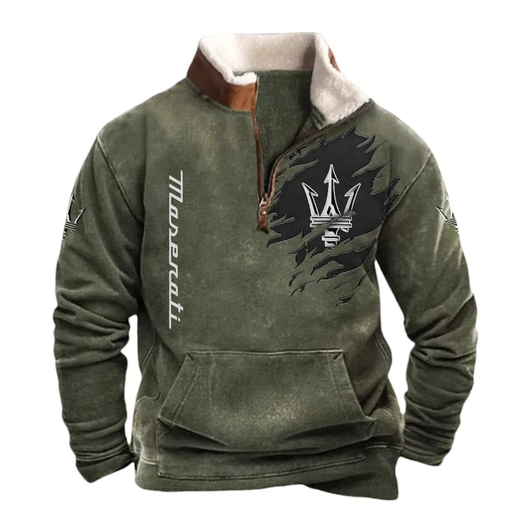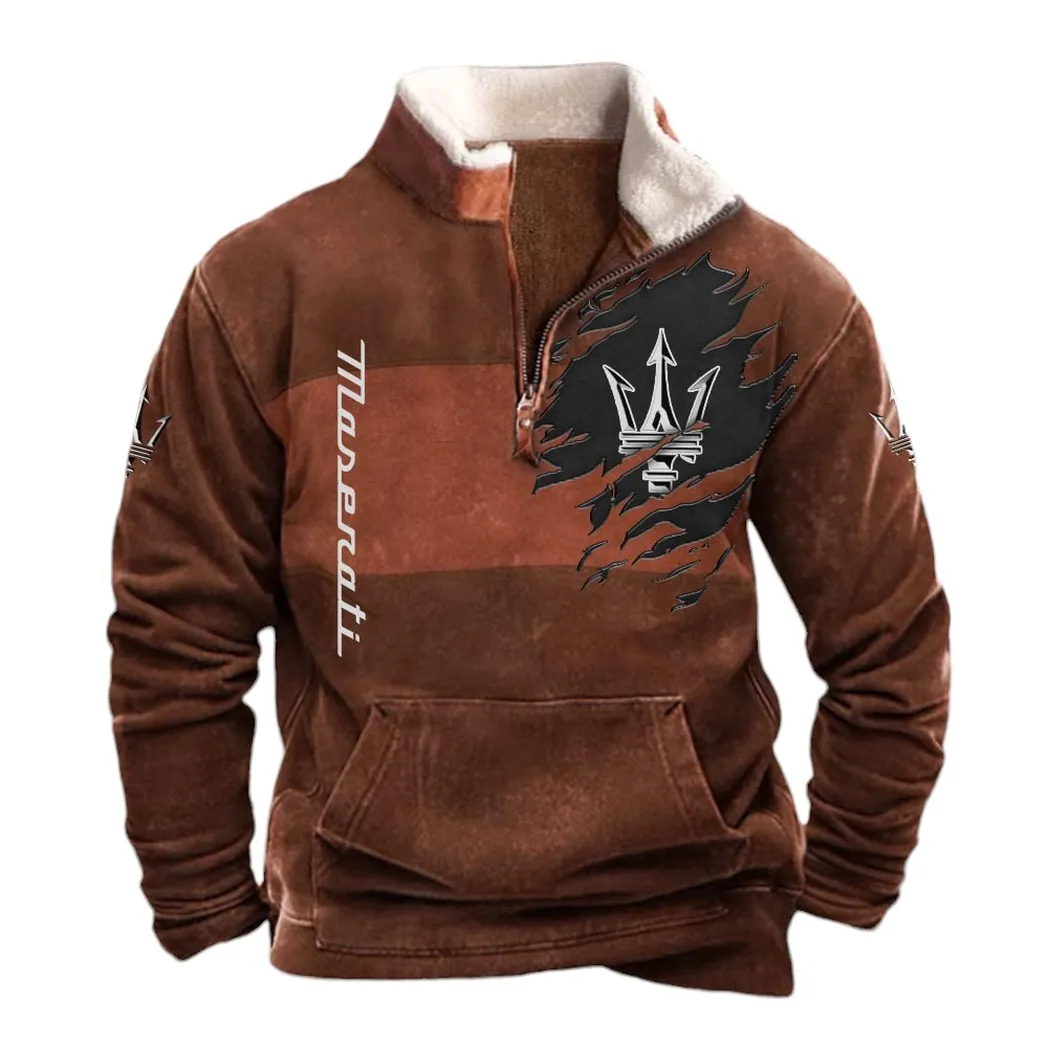 Maserati Half Zip Fur Collar Hoodie CAR0926092055, All Over Print Half Zip Fur Collar Hoodie