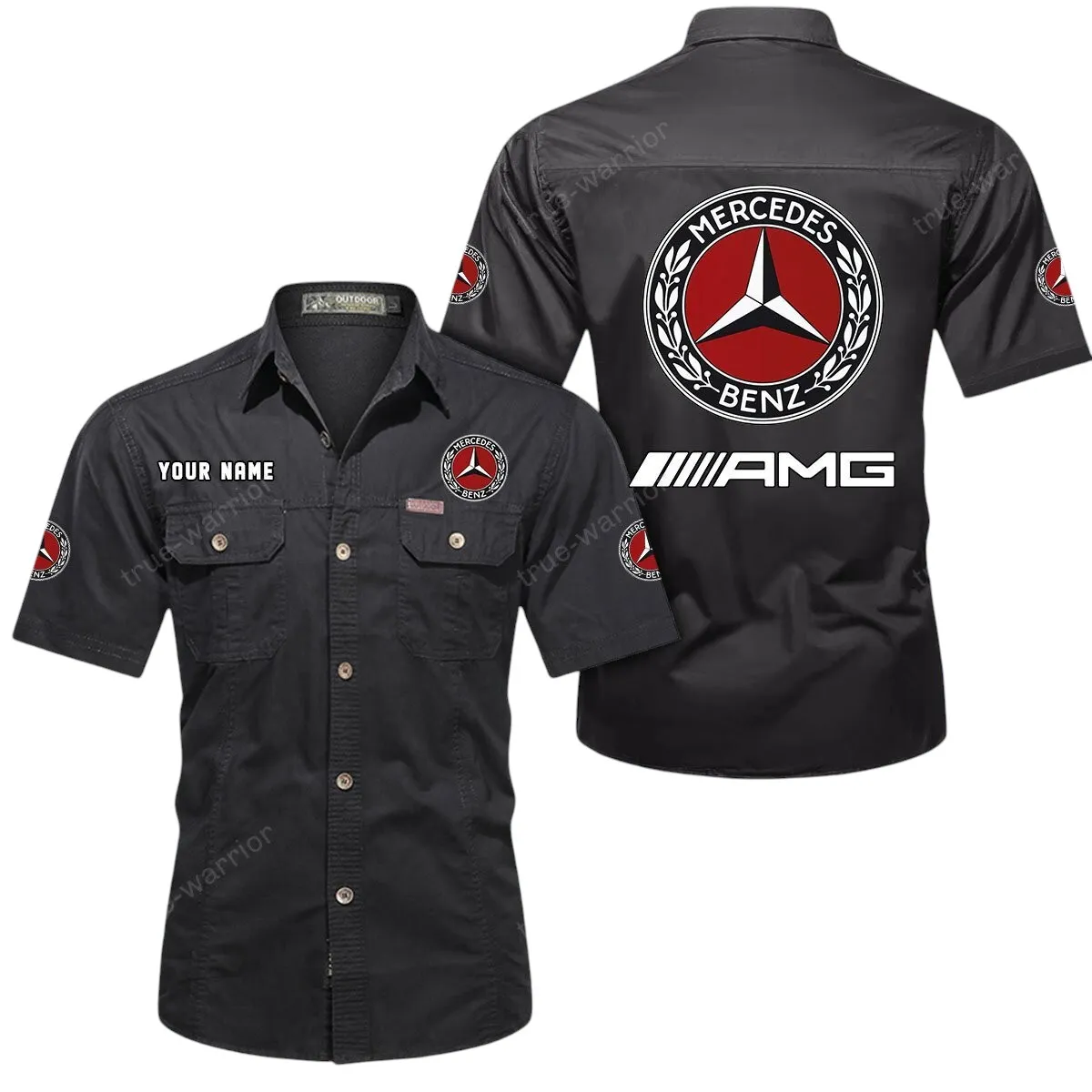 Mercedes AMG Short Sleeved Shirt, All Over Print Button Shirt CAR444052625841 – Black