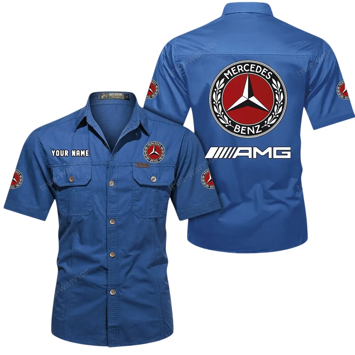 Mercedes AMG Short Sleeved Shirt, All Over Print Button Shirt CAR444052625841 – Cowboy Blue