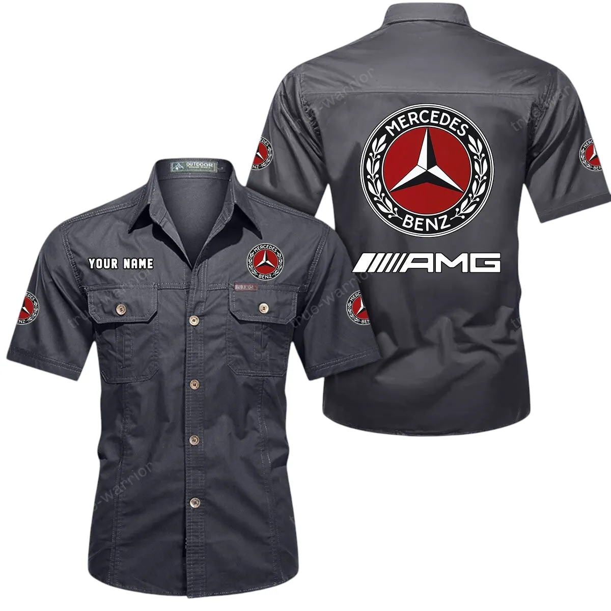 Mercedes AMG Short Sleeved Shirt, All Over Print Button Shirt CAR444052625841 – Gray