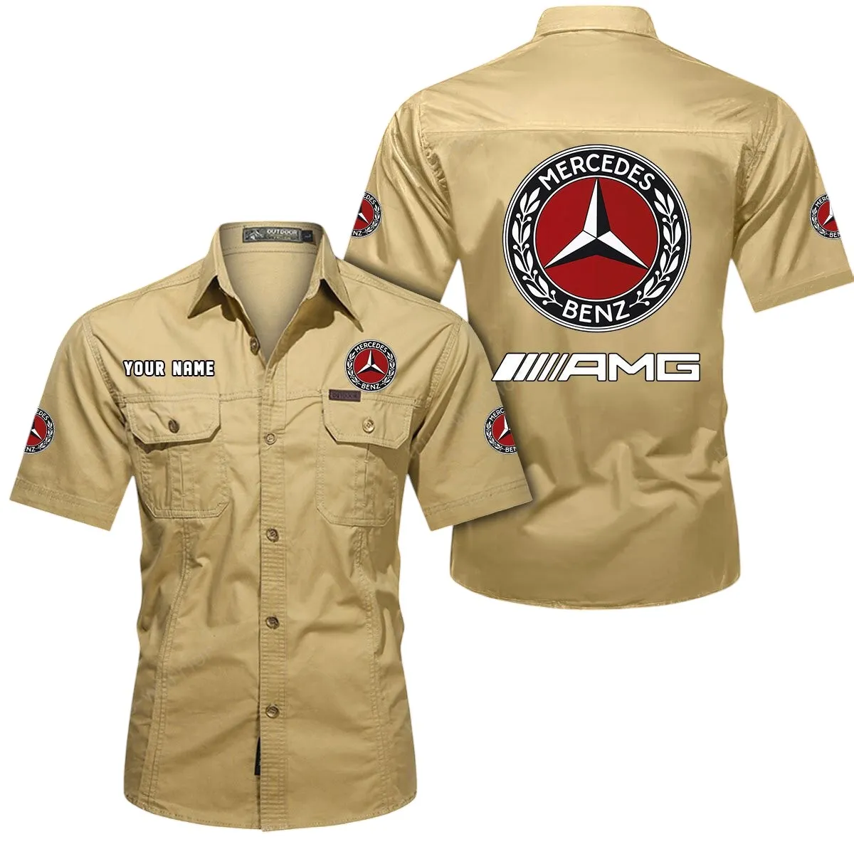 Mercedes AMG Short Sleeved Shirt, All Over Print Button Shirt CAR444052625841 – Khaki