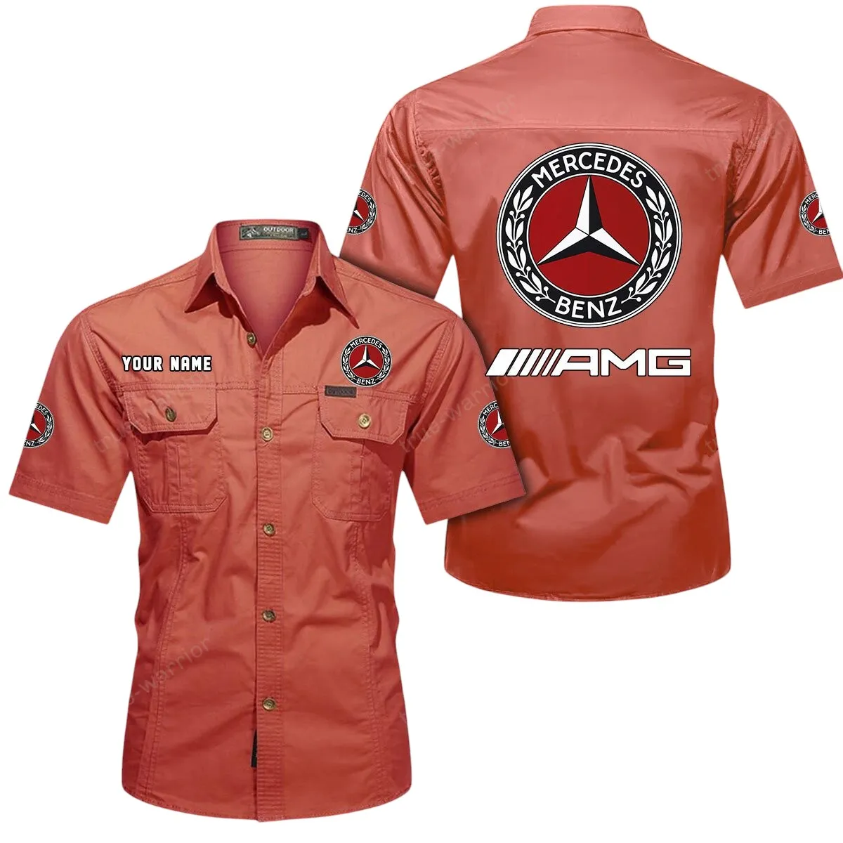 Mercedes AMG Short Sleeved Shirt, All Over Print Button Shirt CAR444052625841 – Red