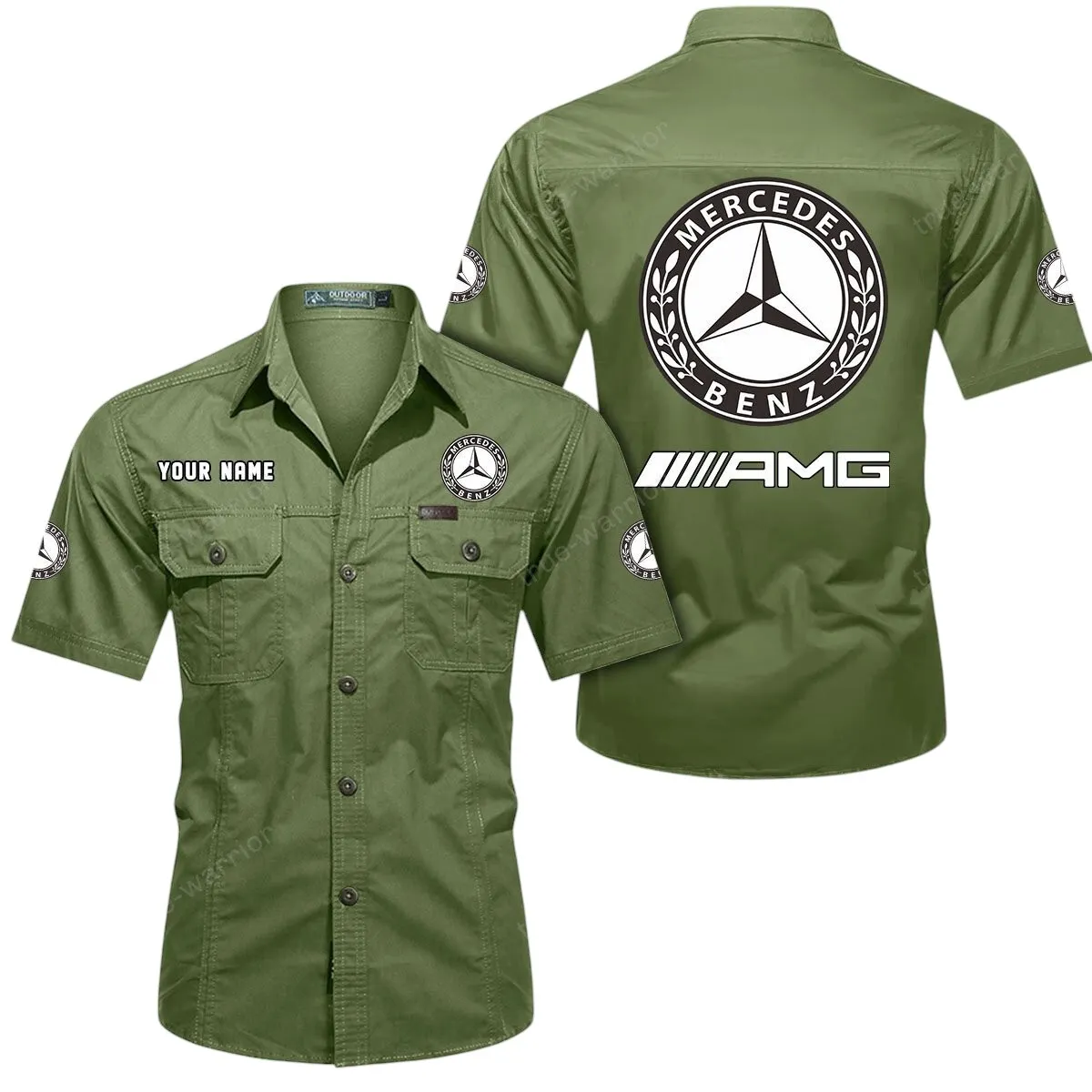 Mercedes AMG Short Sleeved Shirt, All Over Print Button Shirt CAR444052625874 - Army Green