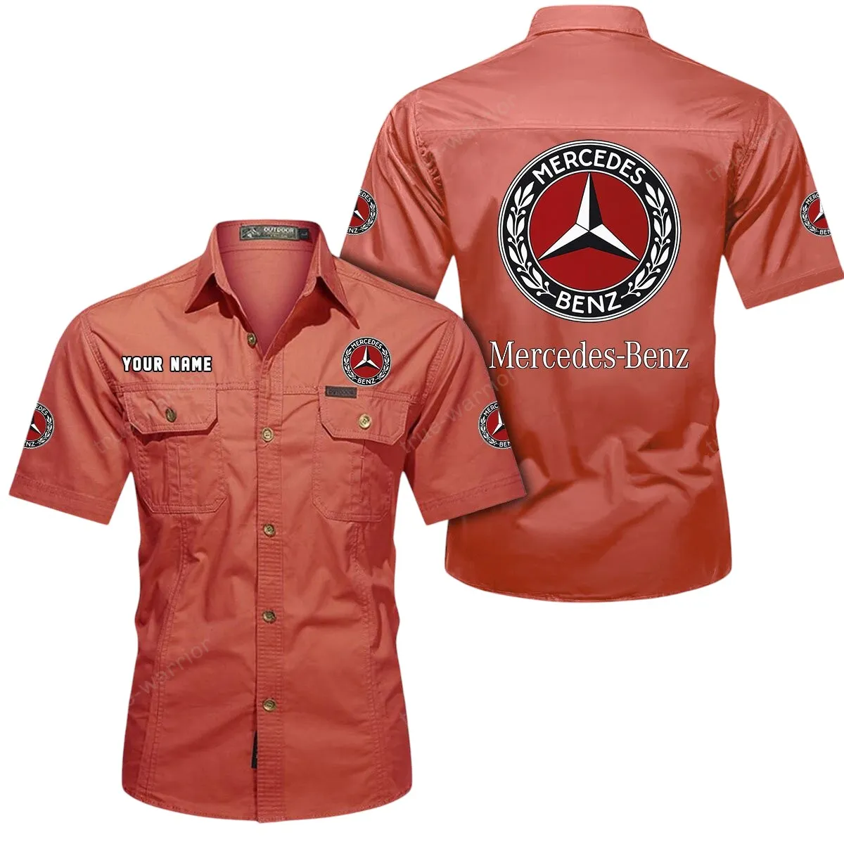 Mercedes Benz Short Sleeved Shirt, All Over Print Button Shirt CAR444052625815 - Khaki