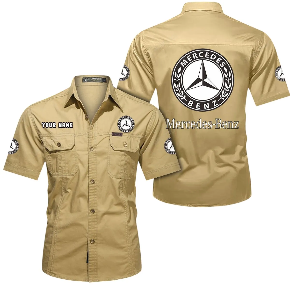 Mercedes Benz Short Sleeved Shirt, All Over Print Button Shirt CAR444052625846 – Khaki