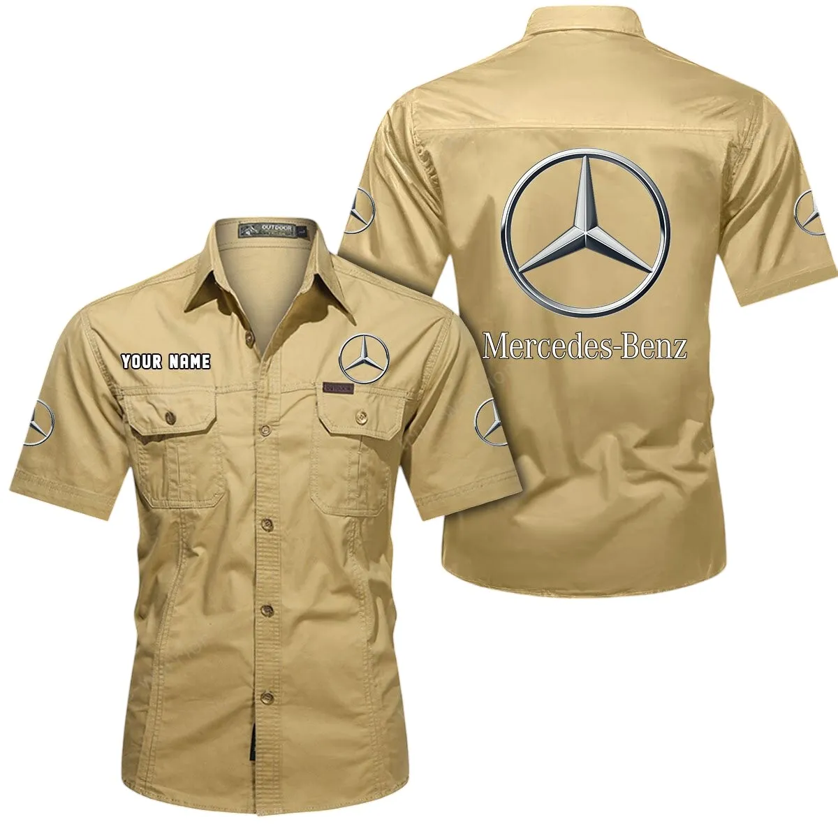 Mercedes Benz Short Sleeved Shirt, All Over Print Button Shirt CAR444052625867 – Khaki