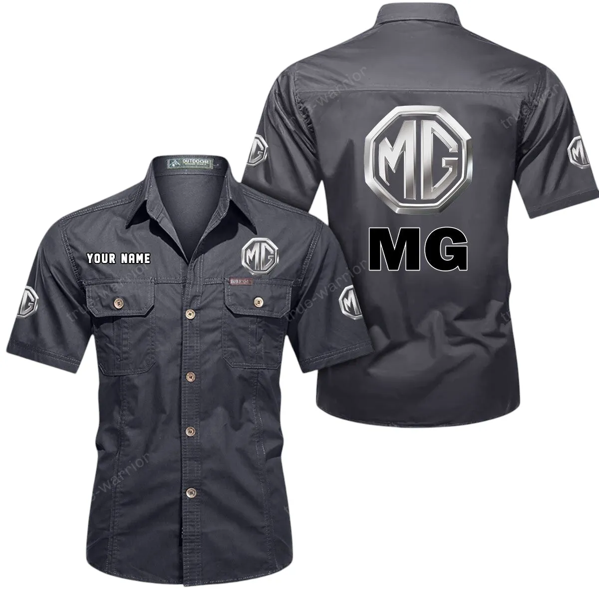 MG Car Short Sleeved Shirt, All Over Print Button Shirt CAR444052625851 - Army Green