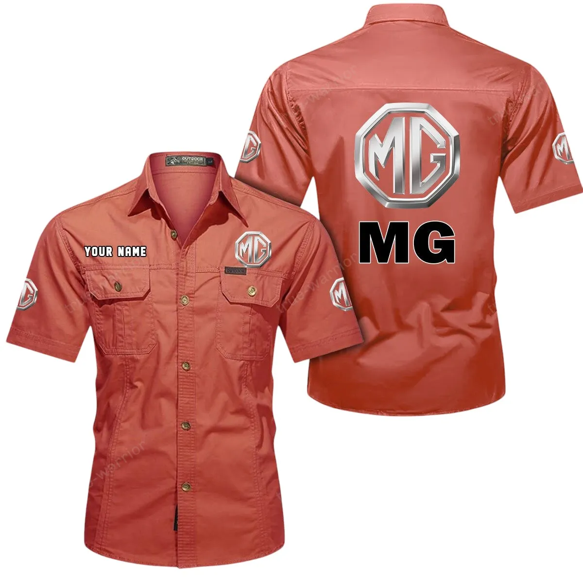 MG Car Short Sleeved Shirt, All Over Print Button Shirt CAR444052625851 - Army Green