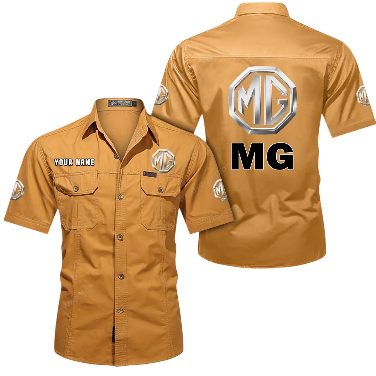 MG Car Short Sleeved Shirt, All Over Print Button Shirt CAR444052625851 - Beige