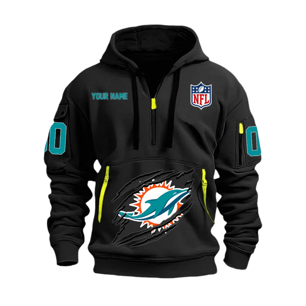 Miami Dolphins Hoodie Half Zip NFL0410072045, Sports All Over Print Hoodie Half Zip