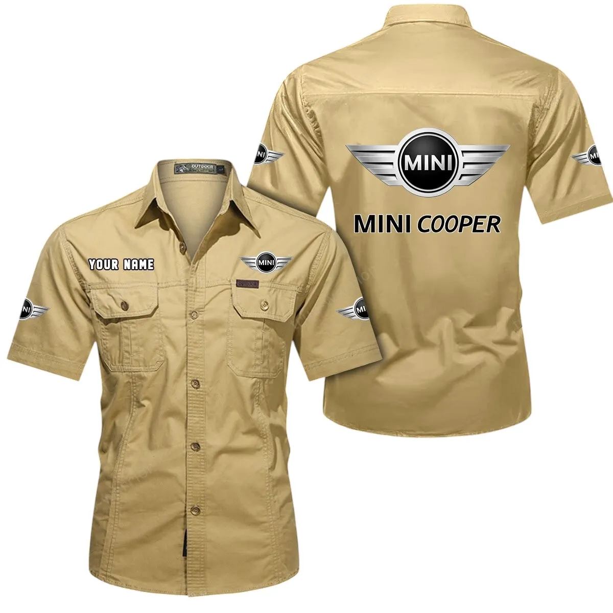 Mini Cooper Short Sleeved Shirt, All Over Print Button Shirt CAR444052625849 – Khaki