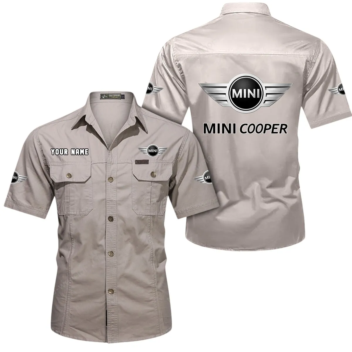 Mini Cooper Short Sleeved Shirt, All Over Print Button Shirt CAR444052625849 - Khaki