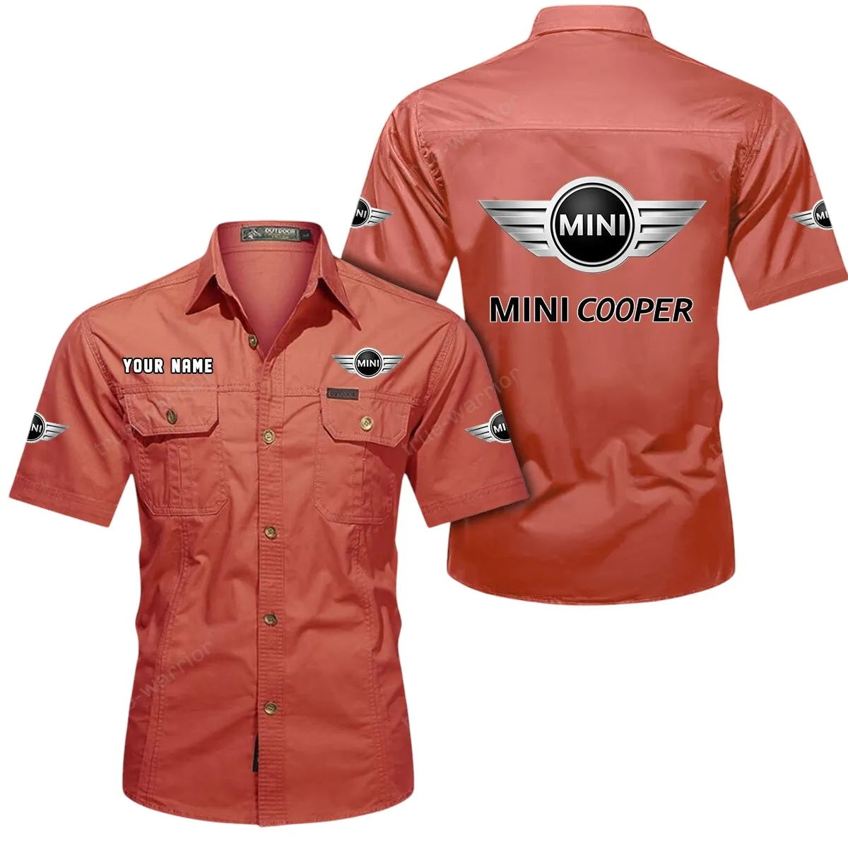 Mini Cooper Short Sleeved Shirt, All Over Print Button Shirt CAR444052625849 - Turmeric