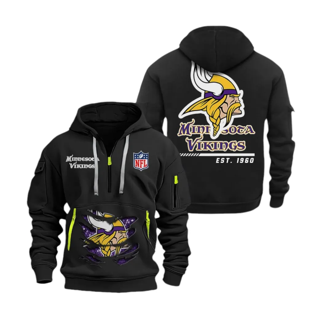 Minnesota Vikings Hoodie Half Zip NFL4310082024, NFL Sports All Over Print Hoodie Half Zip