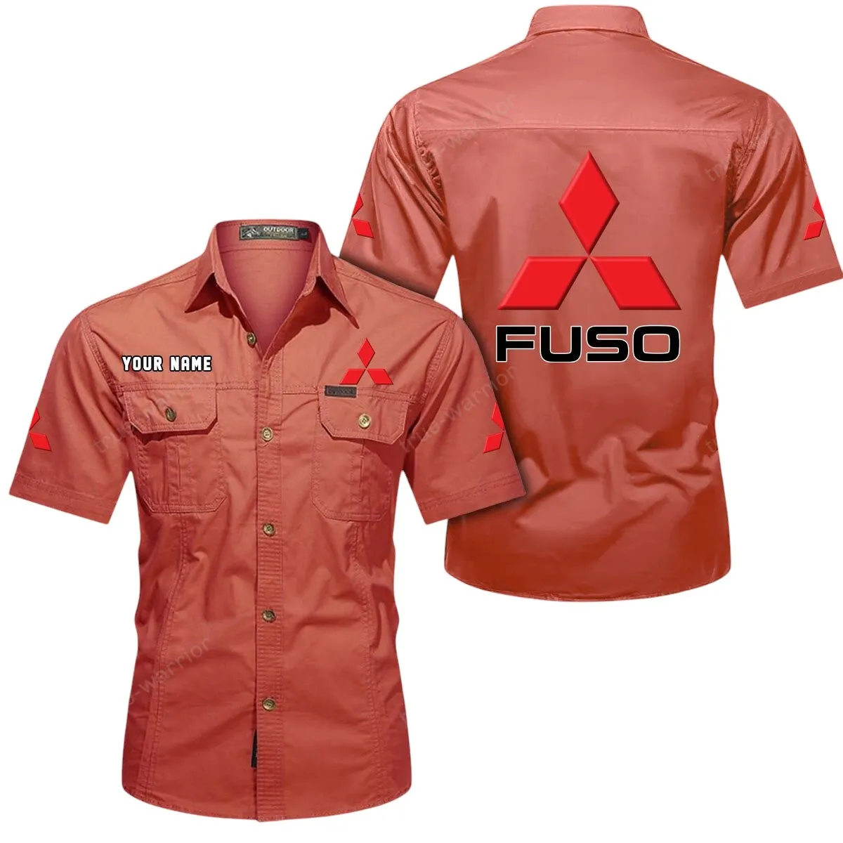 Mitsubishi Fuso Short Sleeved Shirt, All Over Print Button Shirt CAR444052625881 - Khaki