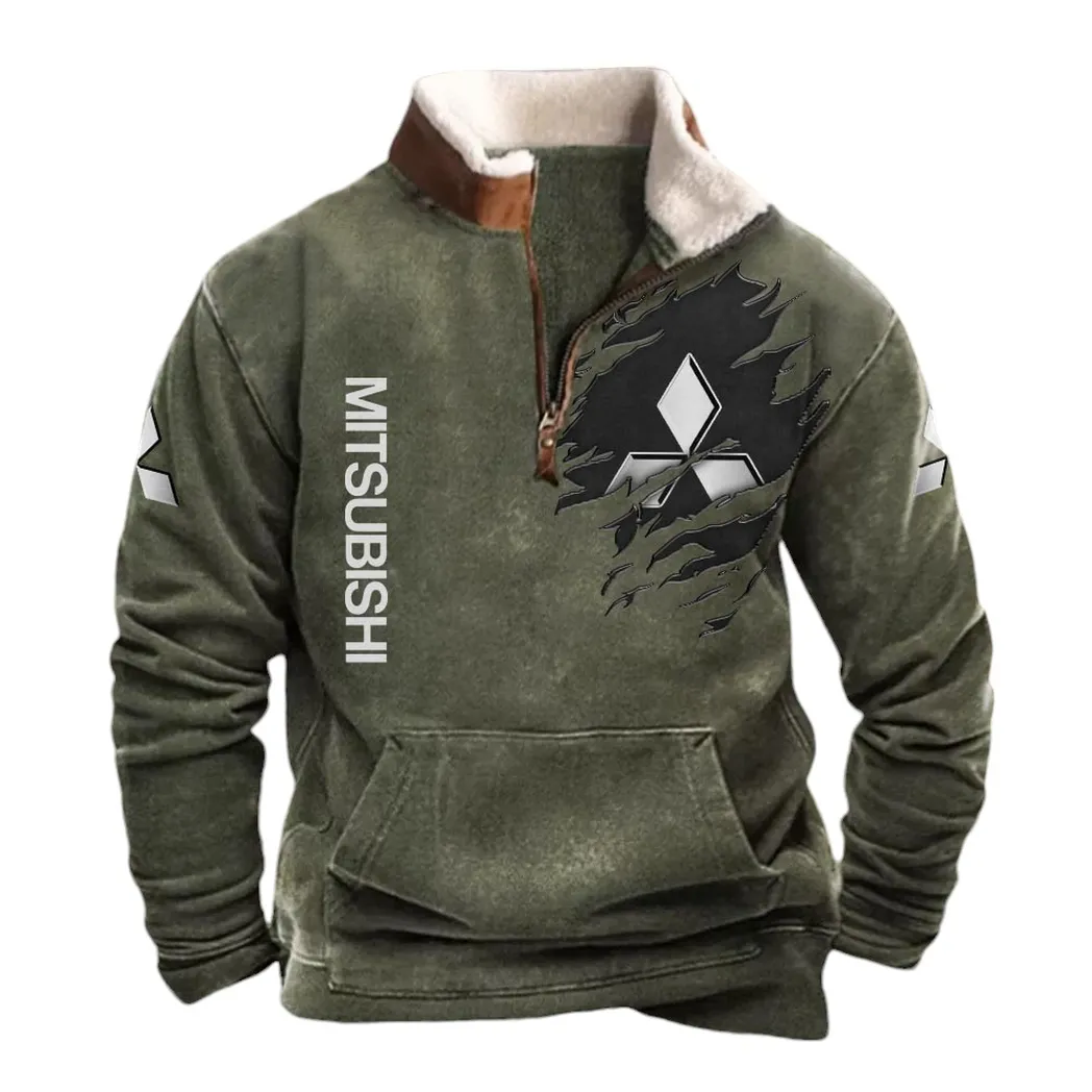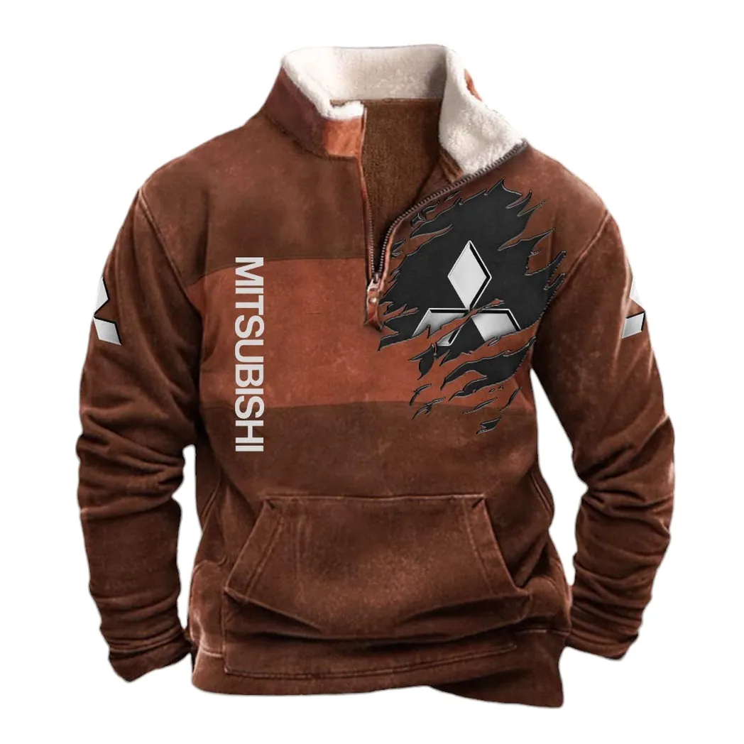 Mitsubishi Half Zip Fur Collar Hoodie CAR0926092091, All Over Print Half Zip Fur Collar Hoodie