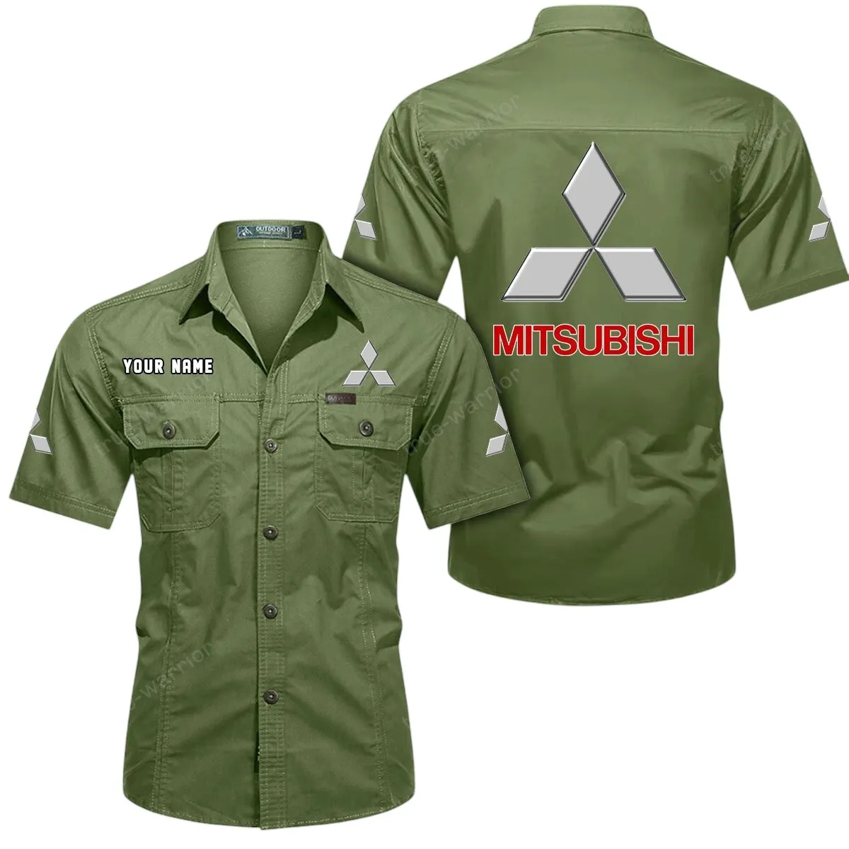 Mitsubishi Short Sleeved Shirt, All Over Print Button Shirt CAR444052625834 - Army Green