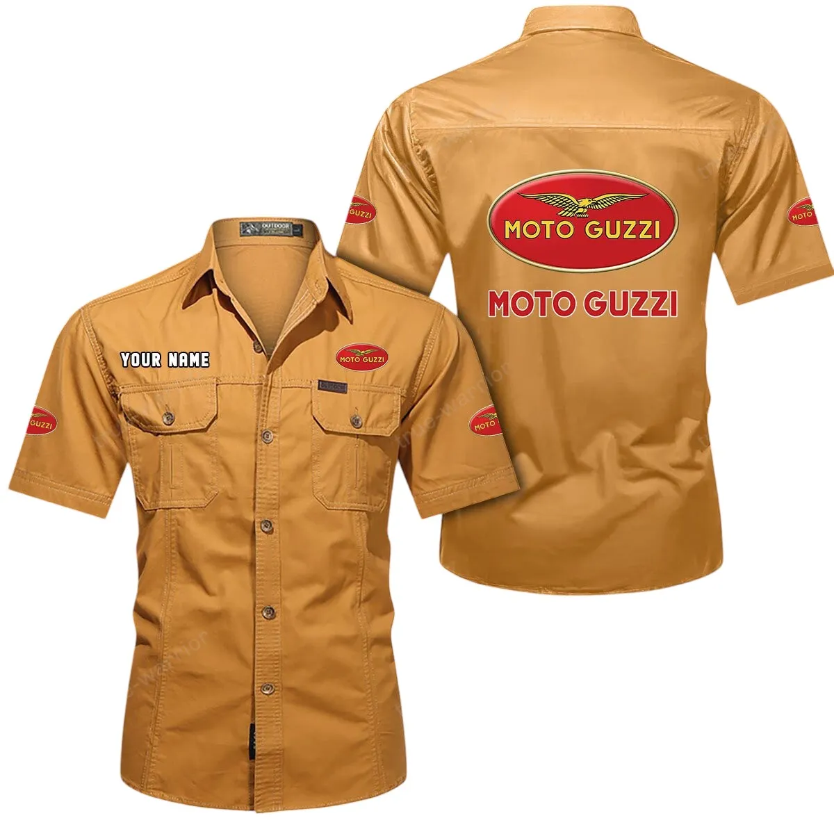 Moto Guzzi Short Sleeved Shirt, All Over Print Button Shirt CAR444052625860 – Turmeric