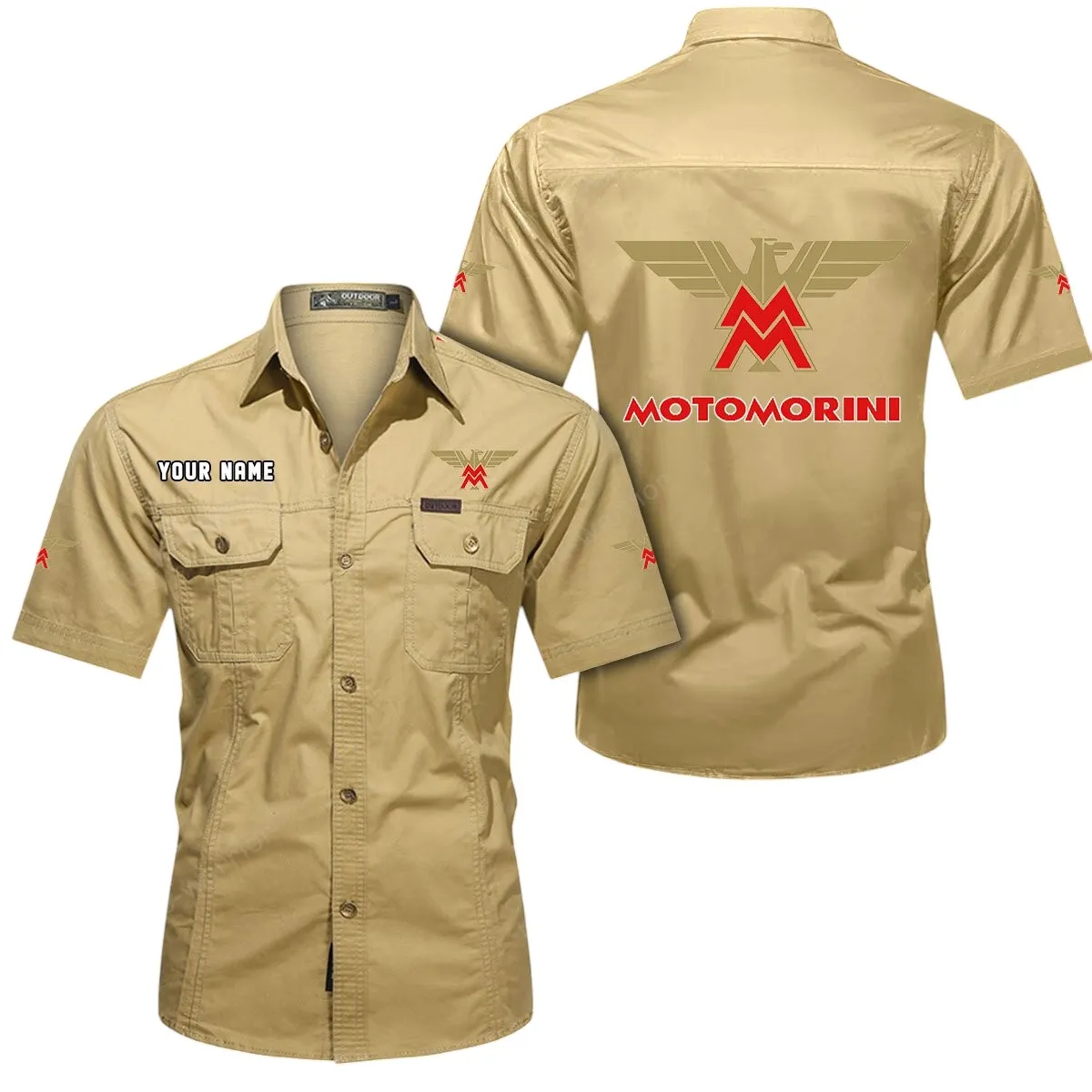 Moto Morini Short Sleeved Shirt, All Over Print Button Shirt CAR444052625839 – Khaki