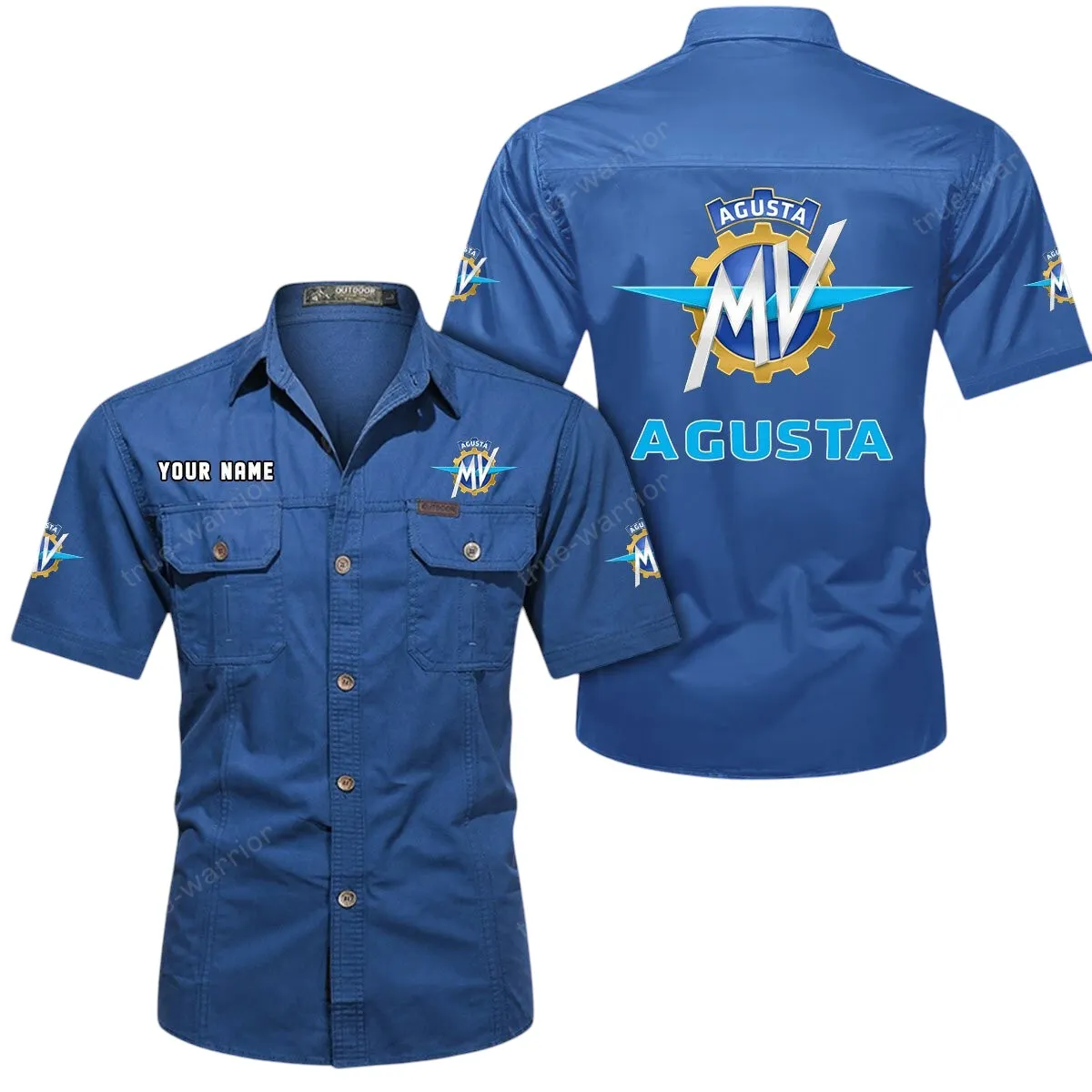 MV Agusta Short Sleeved Shirt, All Over Print Button Shirt CAR444052625871 – Cowboy Blue