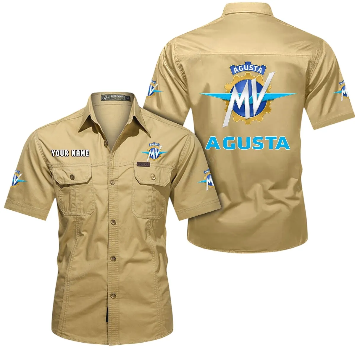 MV Agusta Short Sleeved Shirt, All Over Print Button Shirt CAR444052625871 – Khaki