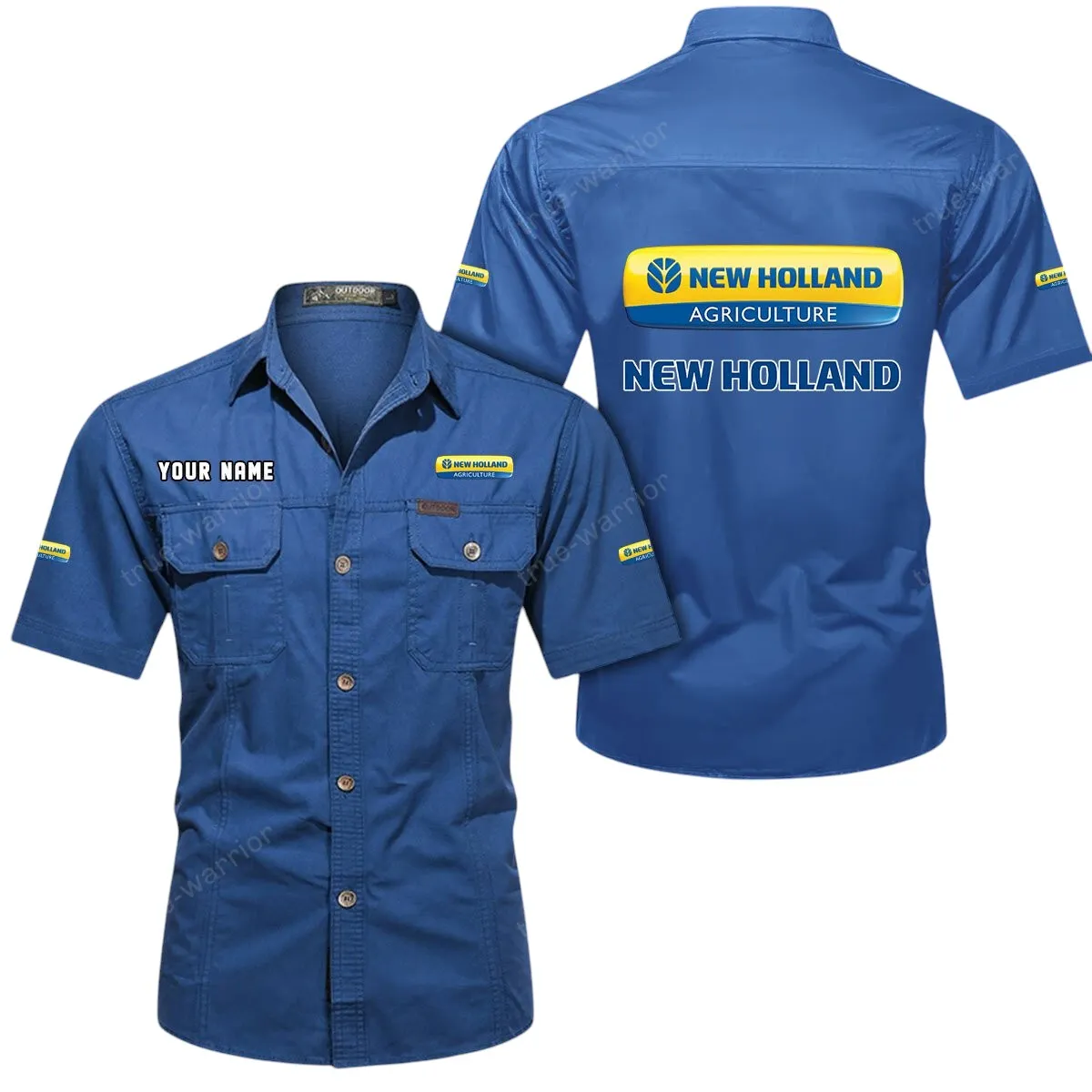 New Holland Short Sleeved Shirt, All Over Print Button Shirt CAR444052625909 – Cowboy Blue