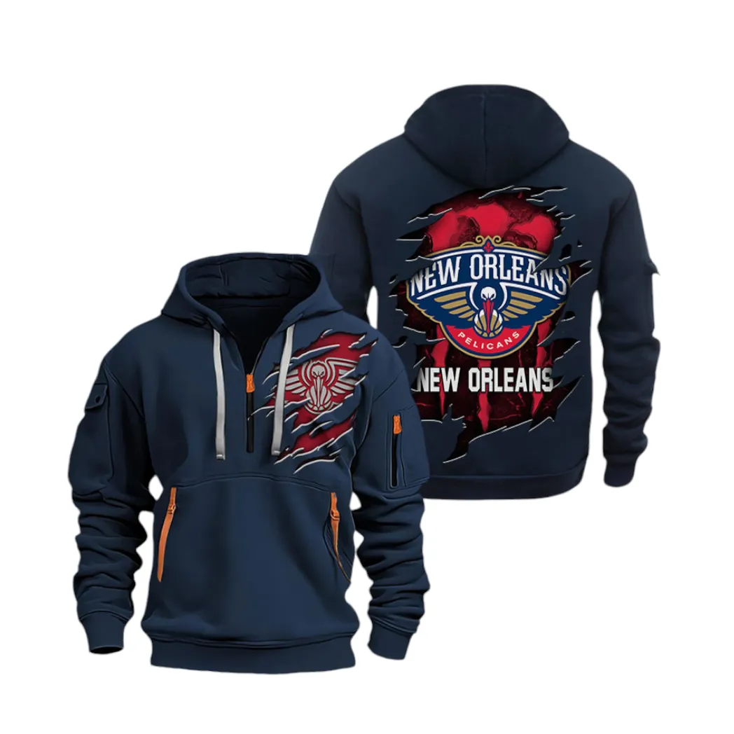 New Orleans Pelicans Hoodie Half Zipper NBA04172024477, NBA Sports All Over Print Hoodie Half Zipper