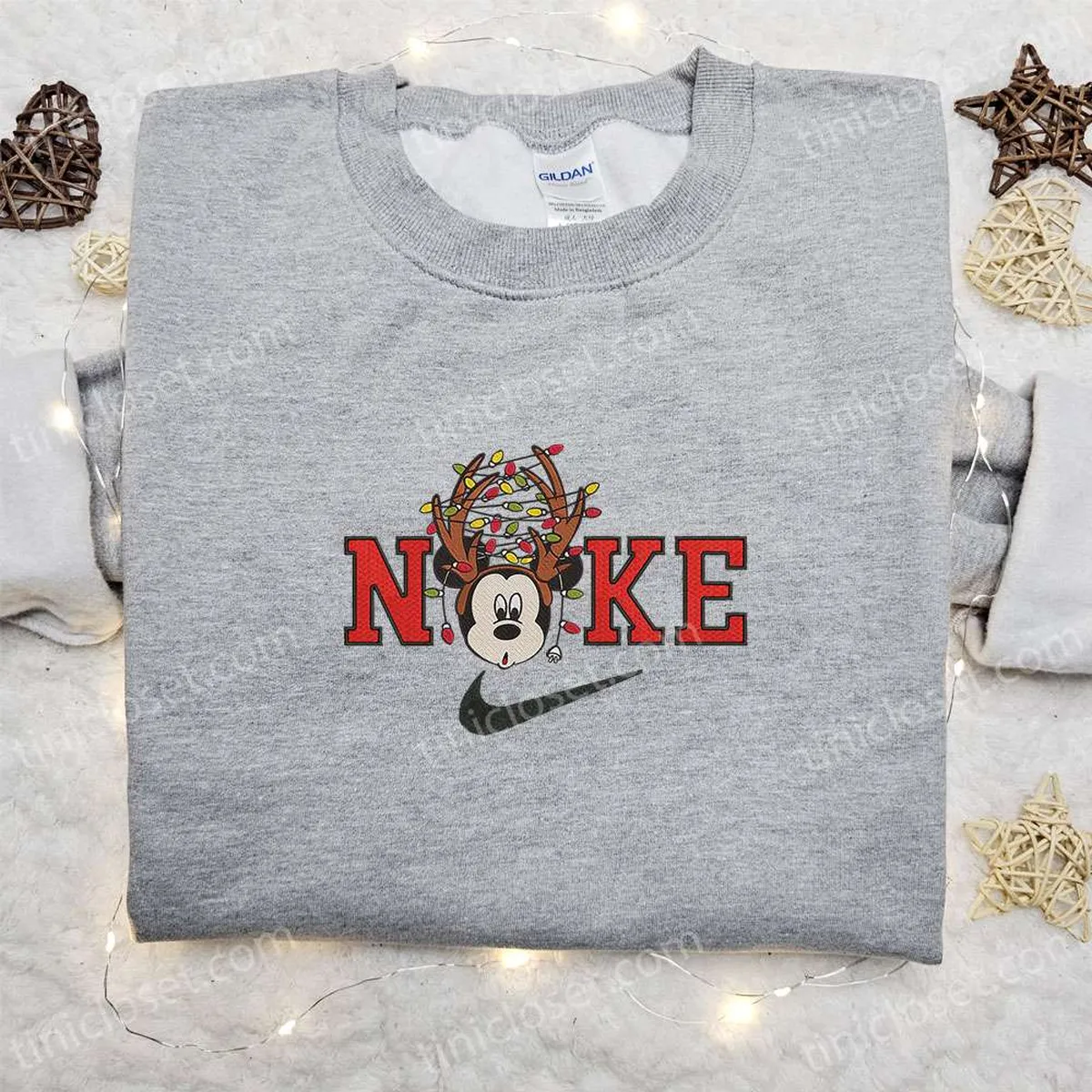 Nike Christmas X Mickey Ornaments Cartoon Embroidered Sweatshirt, Disney Characters Embroidered HoodieDay Gift