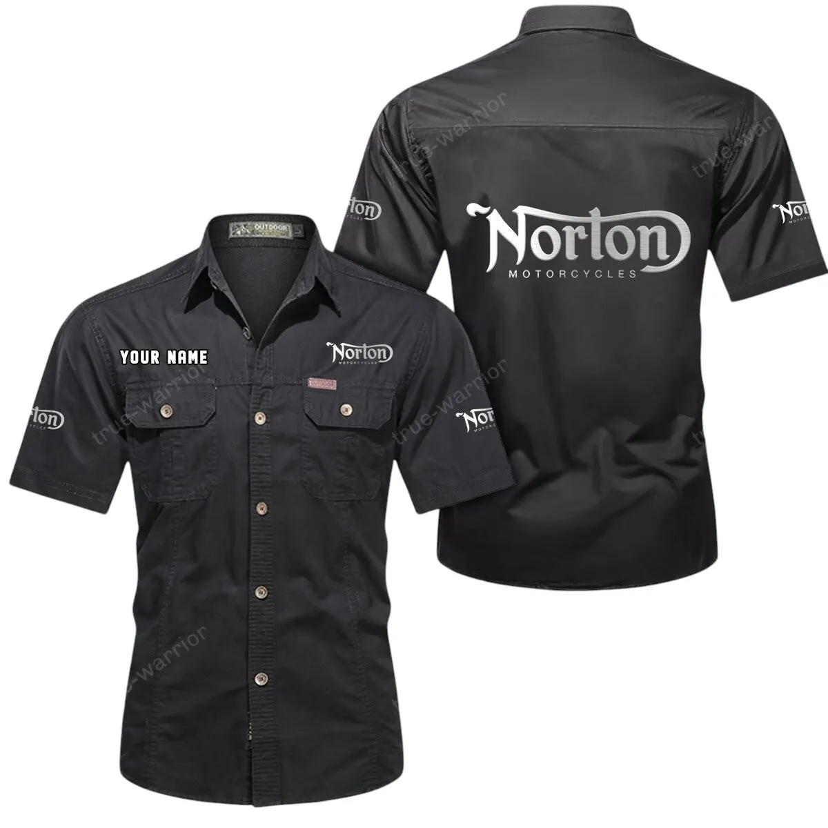 Norton Motorcycles Short Sleeved Shirt, All Over Print Button Shirt CAR444052625861 - Army Green
