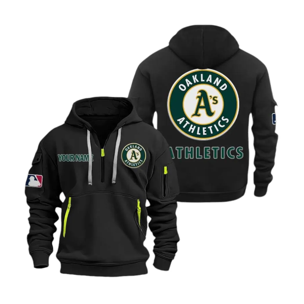 Oakland Athletics Hoodie Half Zip MLB5010012029, MLB Sports All Over Print Hoodie Half Zip