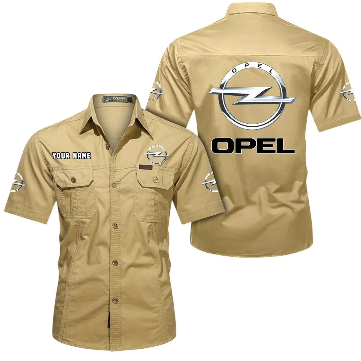 Opel Short Sleeved Shirt, All Over Print Button Shirt CAR444052625859 – Khaki