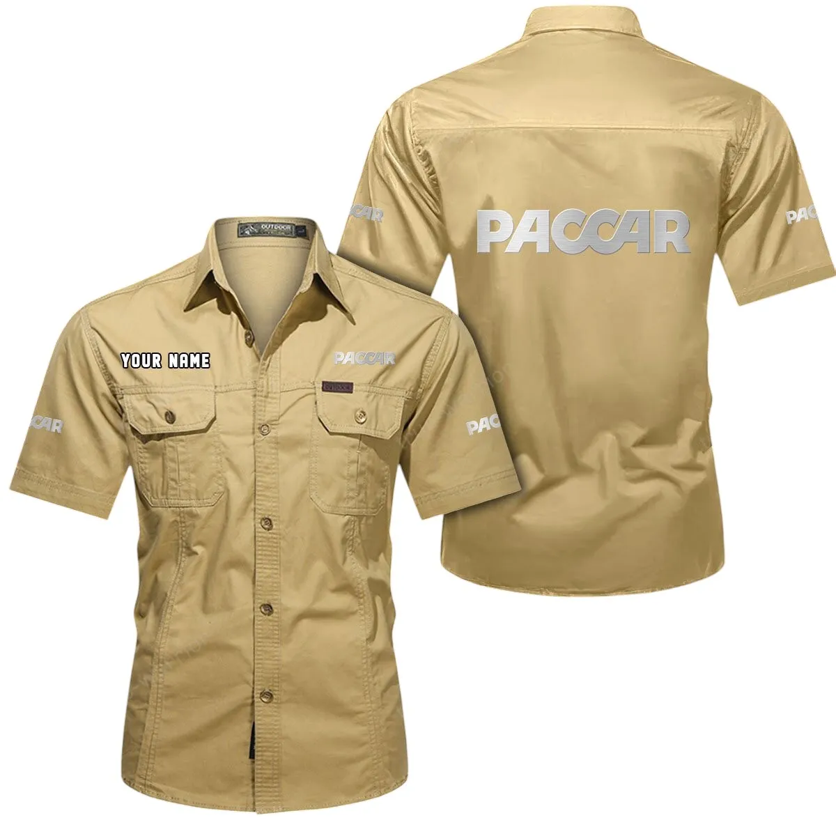 Paccar Short Sleeved Shirt, All Over Print Button Shirt CAR444052625926 – Khaki