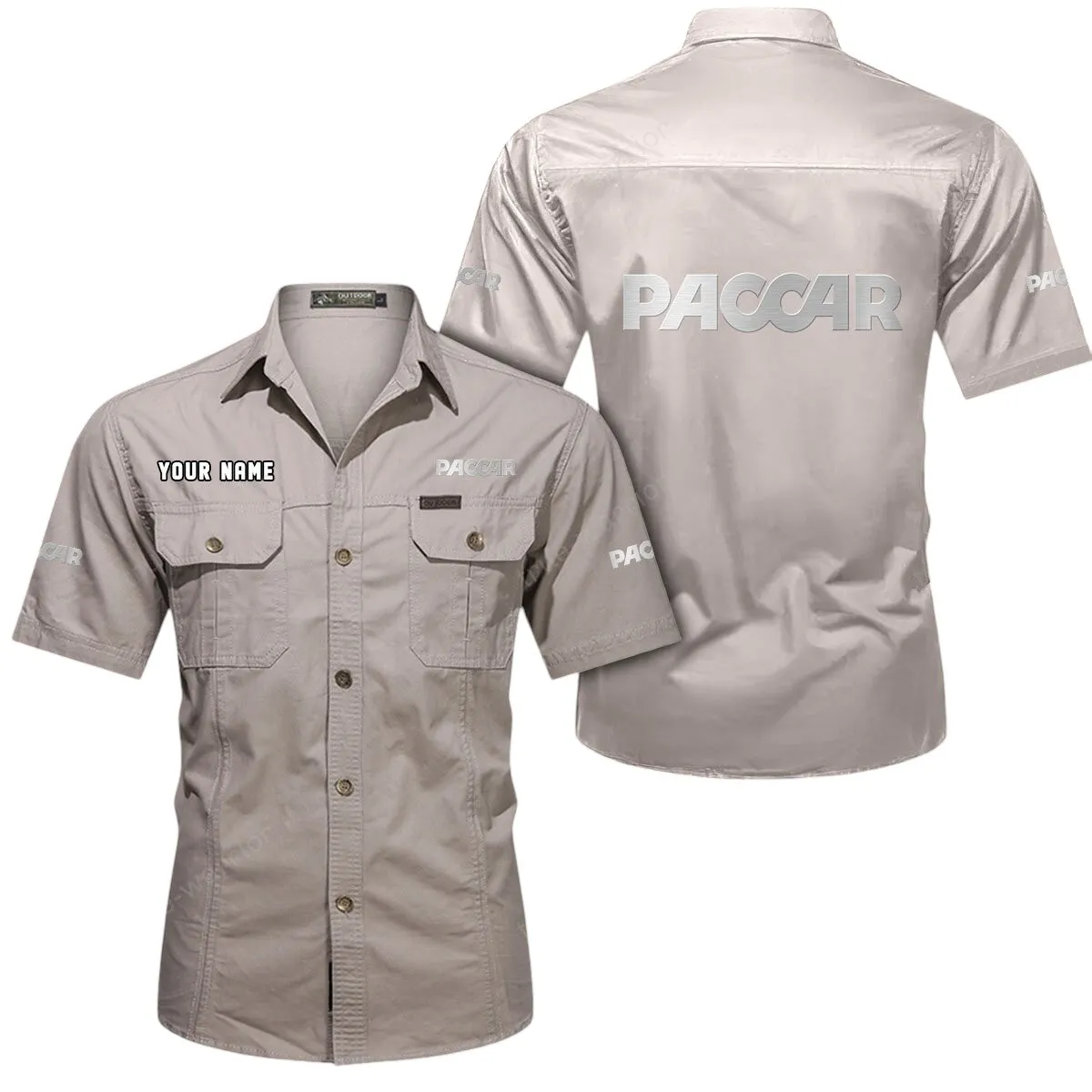 Paccar Short Sleeved Shirt, All Over Print Button Shirt CAR444052625926 – Beige