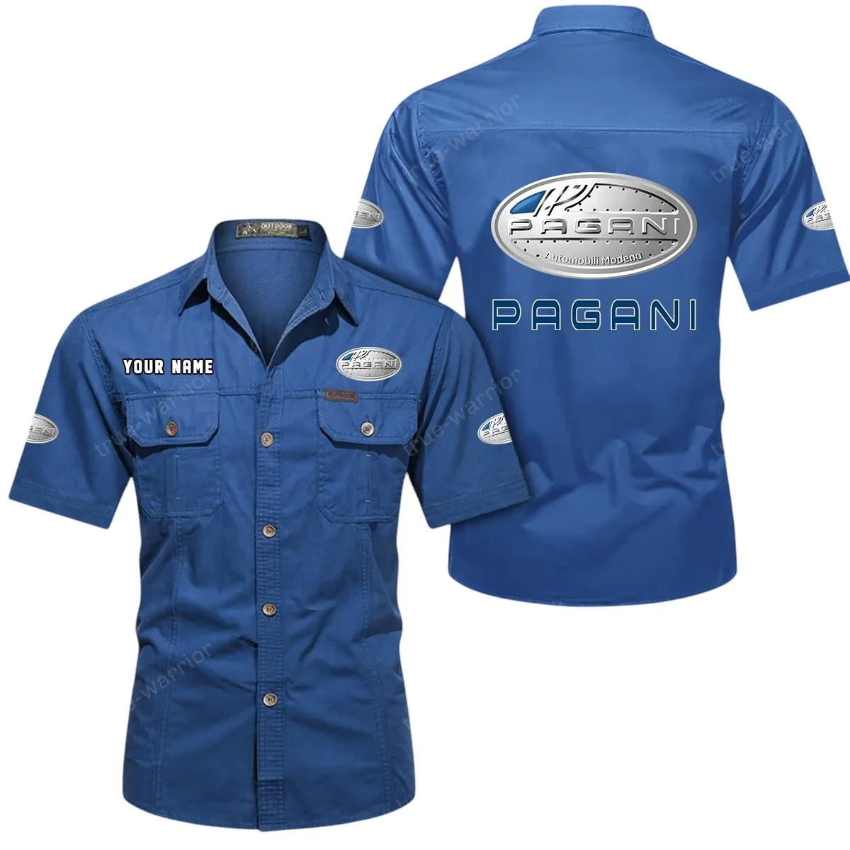 Pagani Short Sleeved Shirt, All Over Print Button Shirt CAR444052625916 - Cowboy Blue