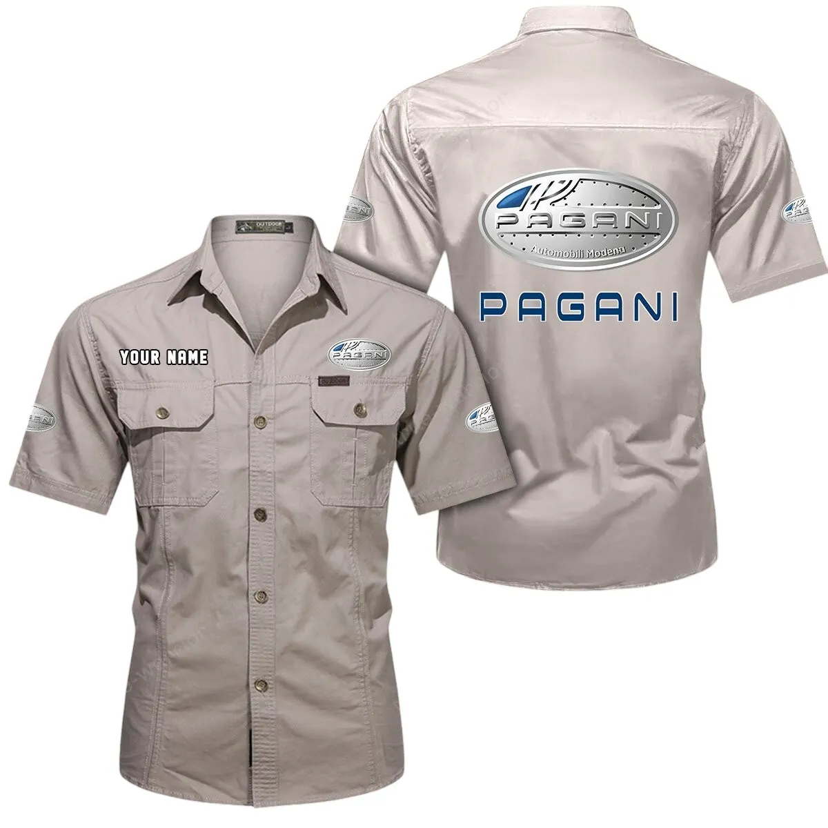 Pagani Short Sleeved Shirt, All Over Print Button Shirt CAR444052625916 – Beige