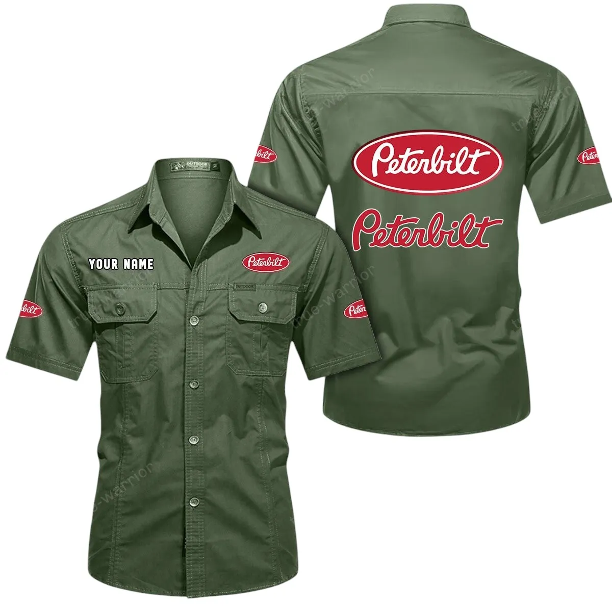 Peterbilt Short Sleeved Shirt, All Over Print Button Shirt CAR444052625931 – Army Green