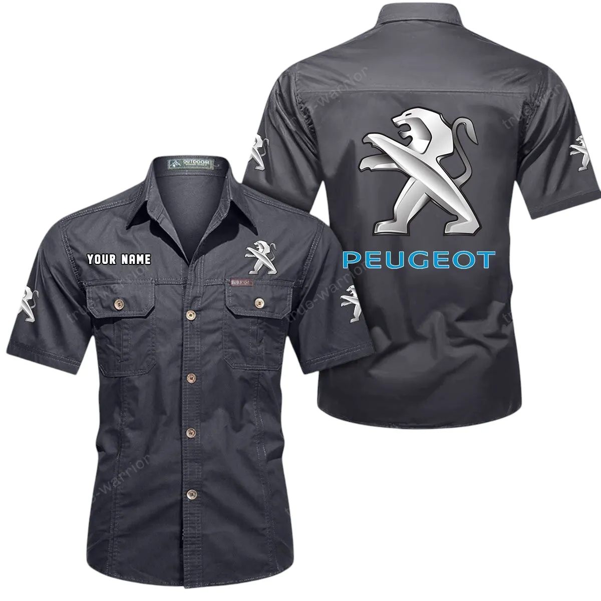 Peugeot Short Sleeved Shirt, All Over Print Button Shirt CAR444052625802 - Gray