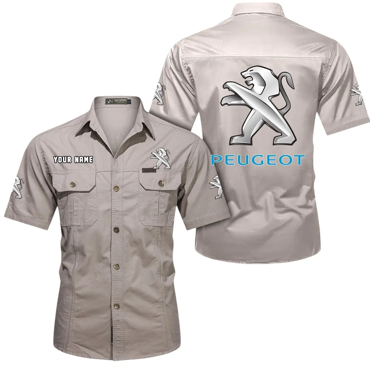 Peugeot Short Sleeved Shirt, All Over Print Button Shirt CAR444052625802 - Khaki