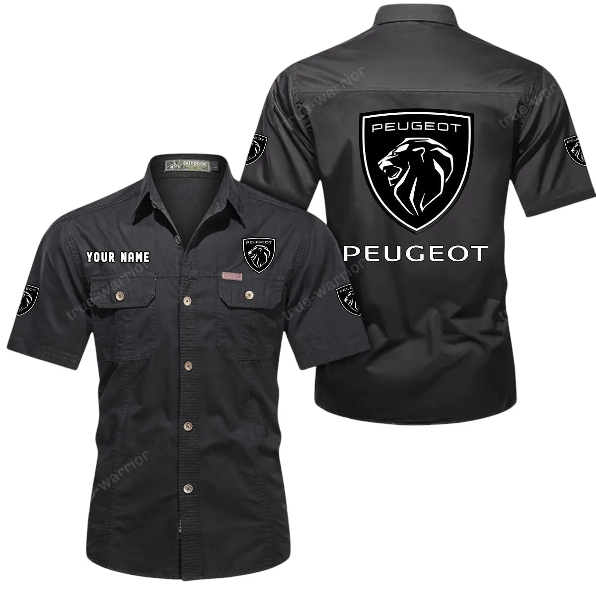Peugeot Short Sleeved Shirt, All Over Print Button Shirt CAR444052625833 – Black