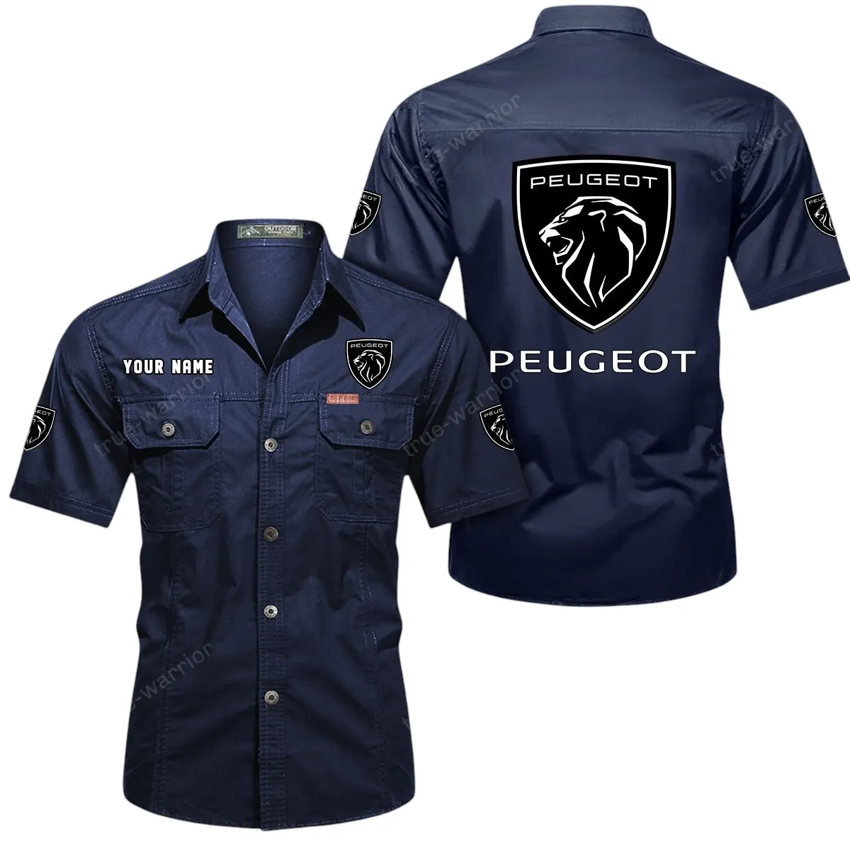 Peugeot Short Sleeved Shirt, All Over Print Button Shirt CAR444052625833 – Dark Blue