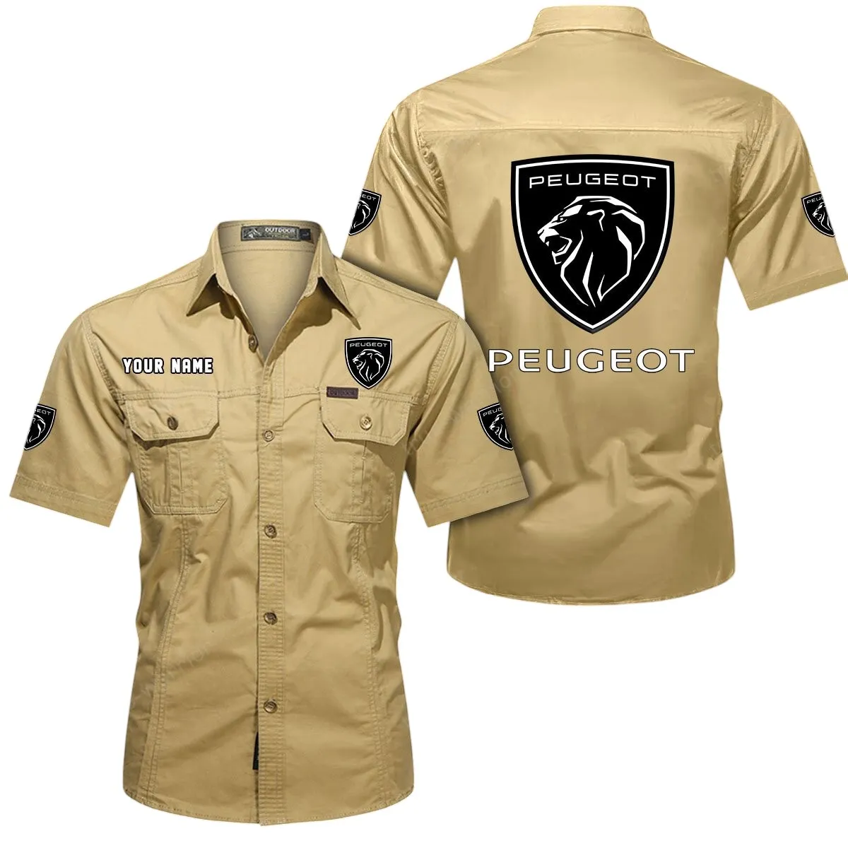 Peugeot Short Sleeved Shirt, All Over Print Button Shirt CAR444052625833 – Khaki