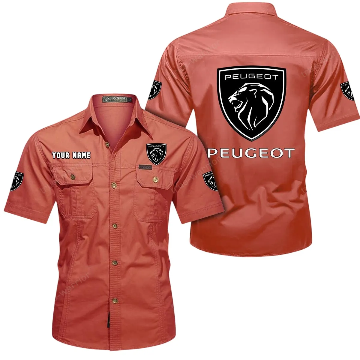 Peugeot Short Sleeved Shirt, All Over Print Button Shirt CAR444052625833 - Khaki