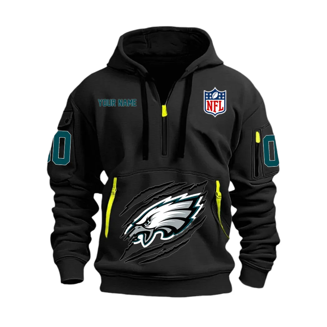 Philadelphia Eagles Hoodie Half Zip NFL0410072028, Sports All Over Print Hoodie Half Zip