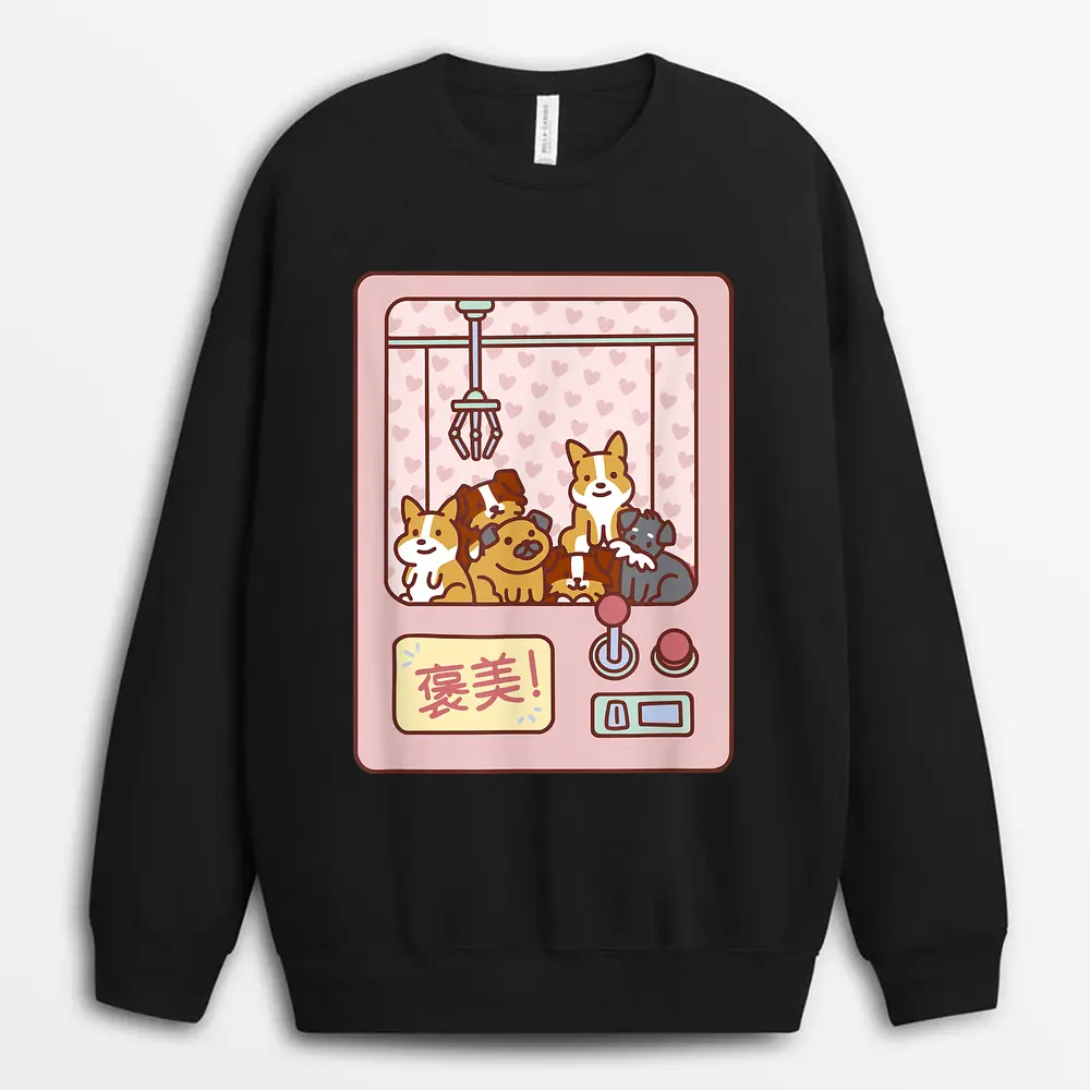 Pink Kawaii Dogs Claw Machine For Girls Sweatshirt – Black