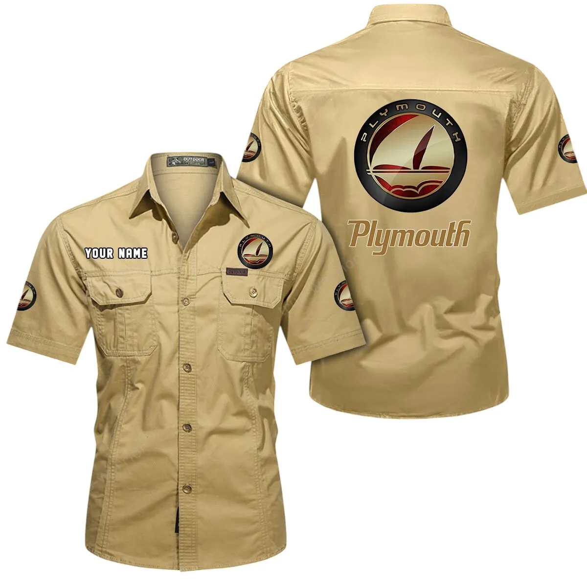 Plymouth Short Sleeved Shirt, All Over Print Button Shirt CAR444052625900 – Khaki