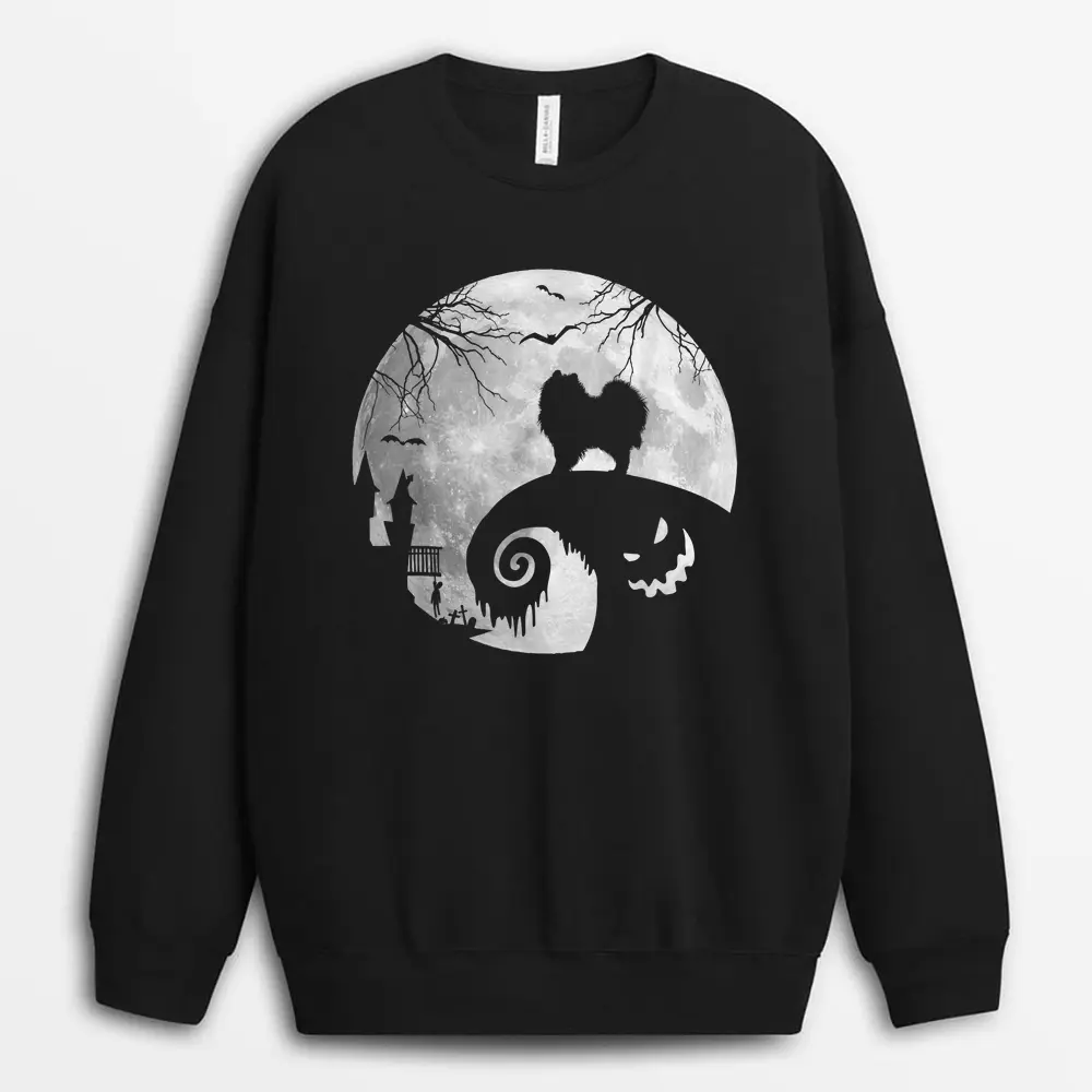 Pomeranian Dog And Moon Halloween Costume Dog Lover Funny Sweatshirt – Black
