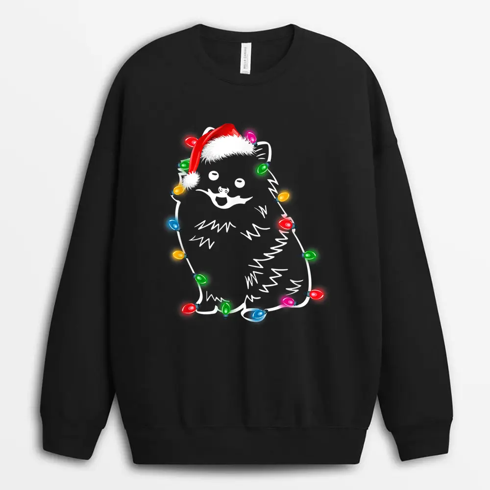 Pomeranian Dog Lights Christmas Matching Family Sweatshirt – Black